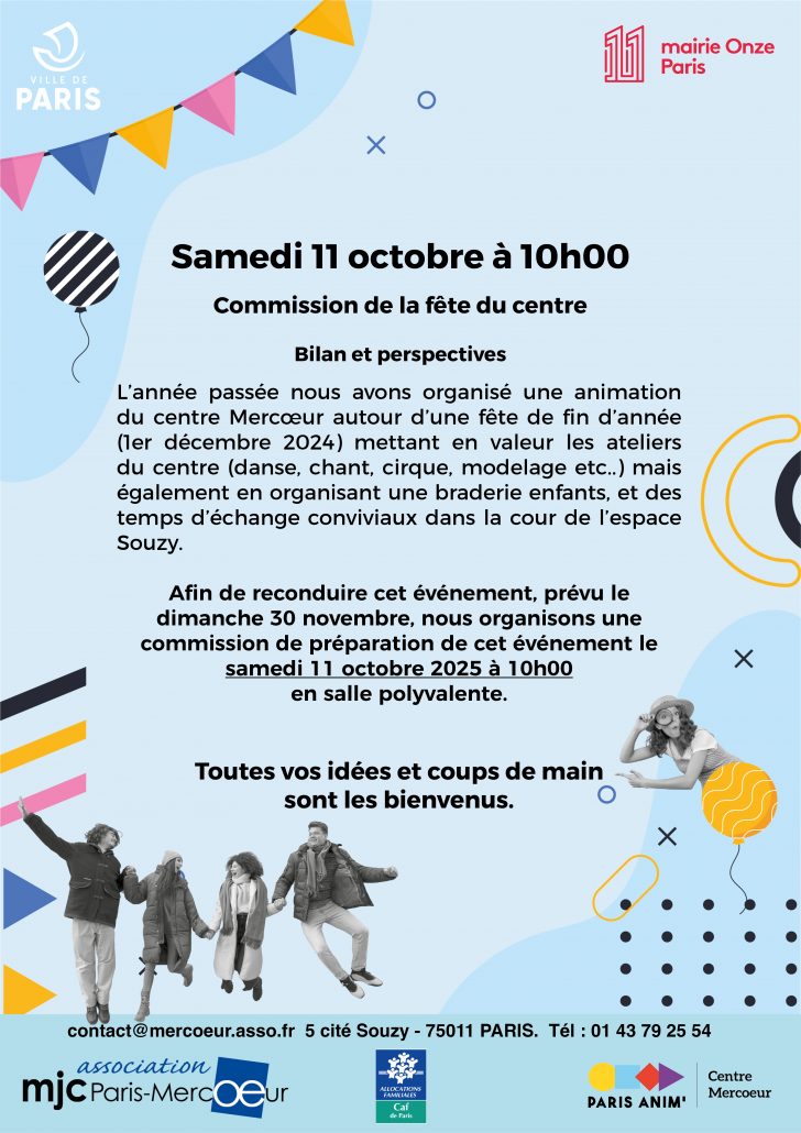 Commission de la fête du centre – Bilan et perspectives – Samedi 11 octobre 2025 à 10h00