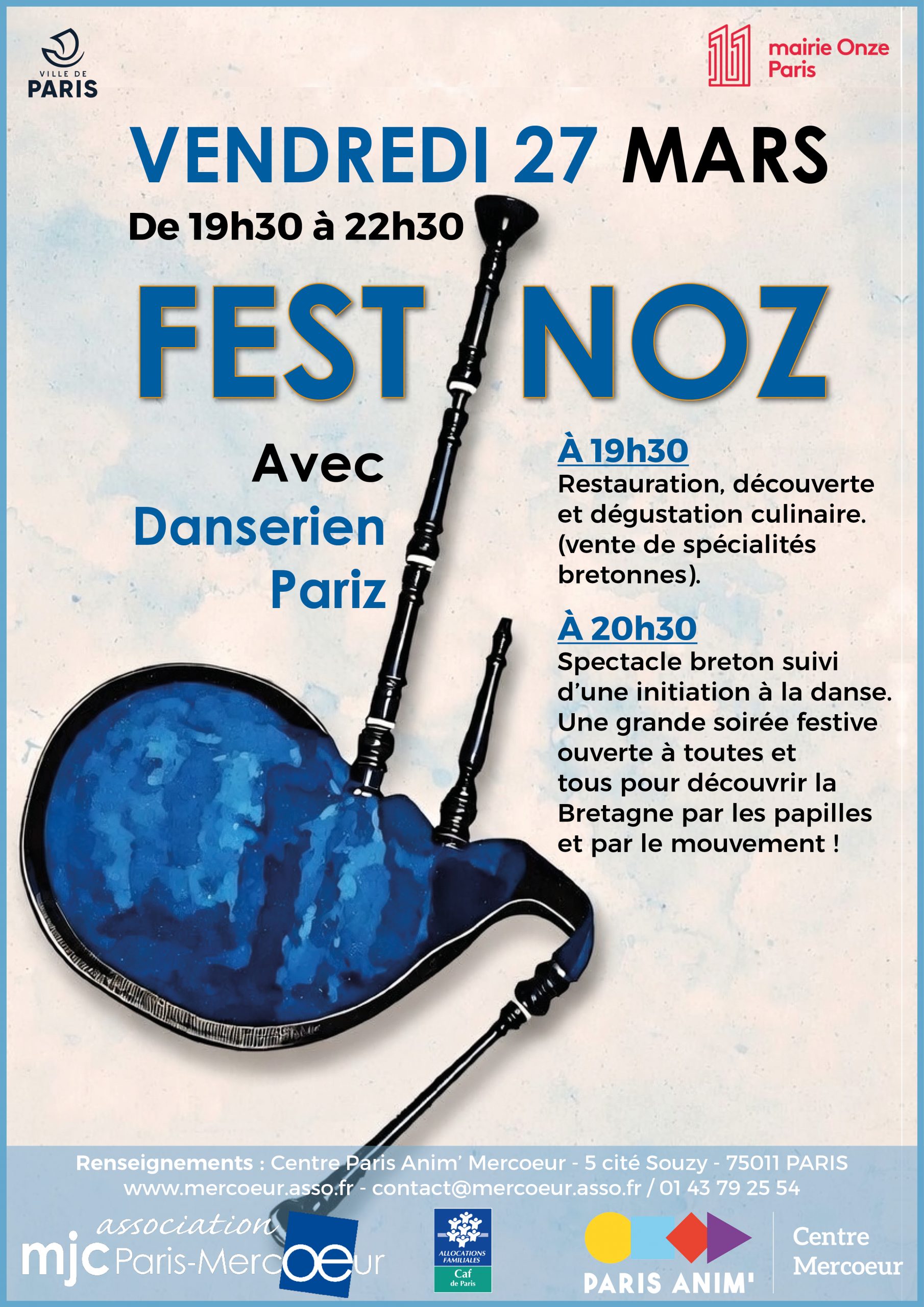 Vendredi 27 mars de 19h30 à 22h30, Fest noz Avec Danserien Pariz